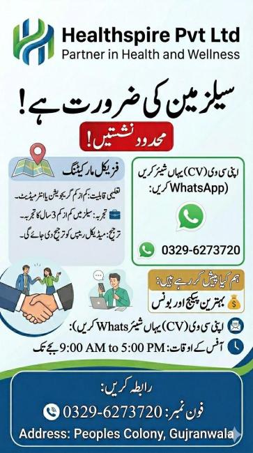 • میڈیکل / فارمیسی فیلڈ کا تجربہ ہو تو بہتر