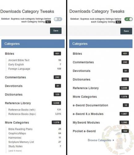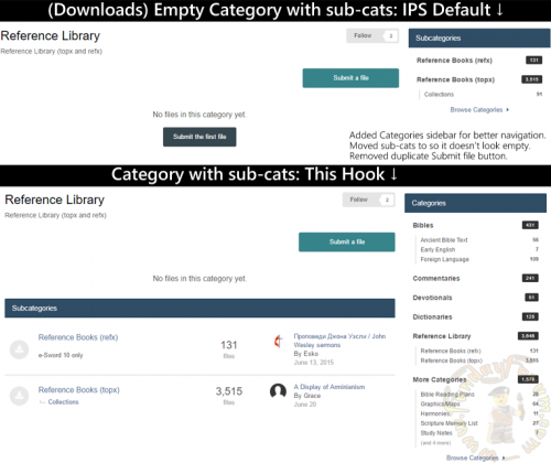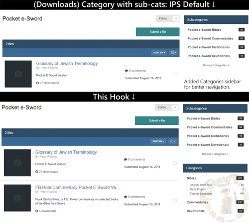 Several changes to the Categories sidebar in the Downloads area, when and how sub-categories are displayed, and when the full navigation Categories sidebar displays. And changes to how categories/subcategories are shown when a category has sub-categories but the parent category is empty.