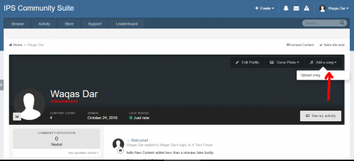 This allows you to set a custom song to the forum profile. Moderators and Administrators are allowed to remove them easily, it will erase the file from your web server as well. You simply just go to the member's profile who has an inappropriate song and remove it by selecting "Remove Song" from Profile Song option. You can also set profile songs for members if you wish.