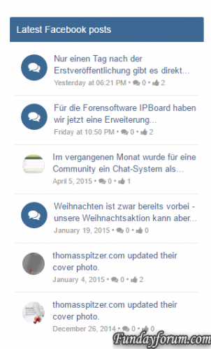 - A widget to display the latest posts of a configured facebook page