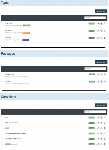 • Drag & drop reordering of categories, advert types, items conditions and packages in the ACP.