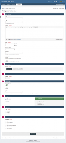 • Advert Images settings: require image, max number of images per advert, max image filezie and max image dimensions