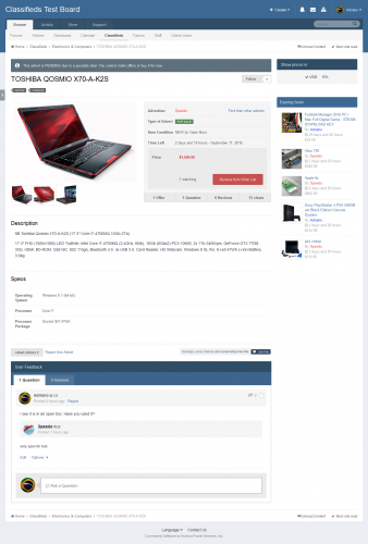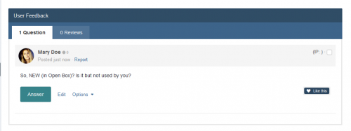 • Submit questions and reviews to advert. Admin can choose if new questions or reviews are moderated, per category. Advertiser can reply to the questions