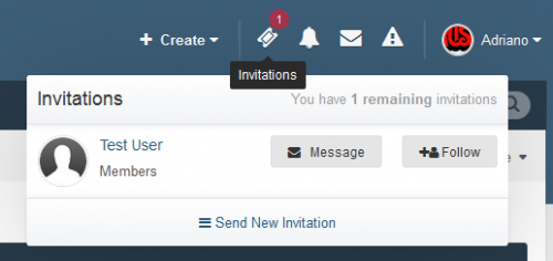 - New icon on board top (beside Notifications and Messenger) to display the converted invitees and how many invites the user has. This icon also shows the remaining invitations for the member (just like how many users are online on Chat).