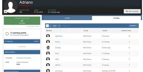 - Shows "Invited by" on user profile and on profile card (hover on user link).