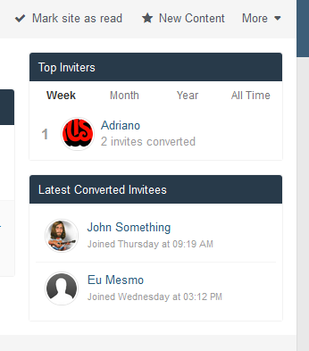 - 2 widgets: Top Inviters (per week, month, year and general) and Latest Converted Invitees, which are invitations converted to membership.