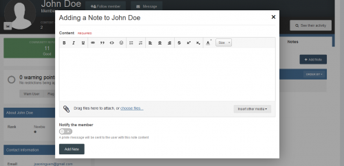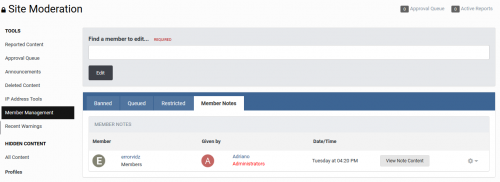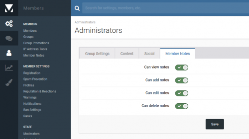 - New tab called Member Notes on ModeratorCP -> Member Management to display notes from all members, where notes can be edited or deleted, if you have permission to do it.