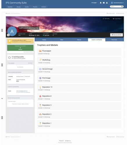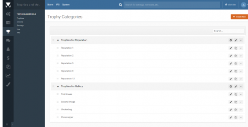 Trophies and Medals invision power board application 4.3 and 4.2 is the best new way to award trophies to your community in a full rewards system!  It offers a fun and engaging new way to give awards ("trophies and medals") to your community to promote positive behavior and more active participation!  You can assign new trophies based upon conditions or criteria that you define, or you can let your moderators manually give medals for unique circumstances!  Trophies and Medals also includes advanced integration with REST API and Automation Rules so the app can be extended for unlimited possibilities.