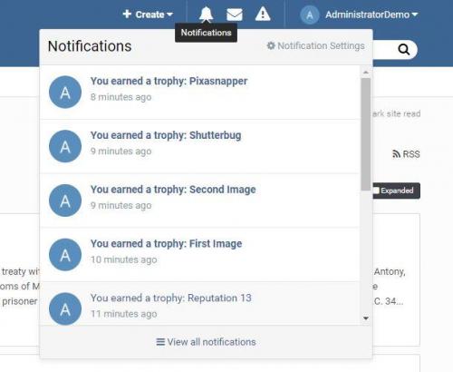• Medals - Medals are manually awarded by moderators, administrators, or groups who have permission. Medals are assigned on the front-end.