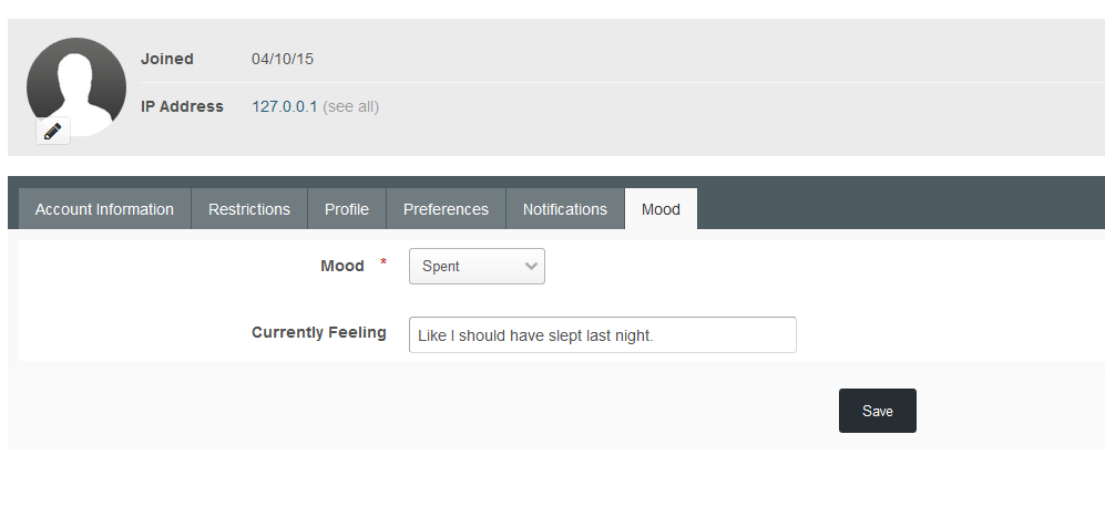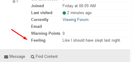 Increase the bond between the users of your community by allowing them to express their current mood and feeling. This application will allow your members to choose moods created by you and enter their own currently feeling (if permitted) which will be displayed in forum topics, hover cards and userβs profiles. Members will also be able to see the latest moods updates by all members through the included widget. This application will help give your community, a deeper βcommunityβ feel.