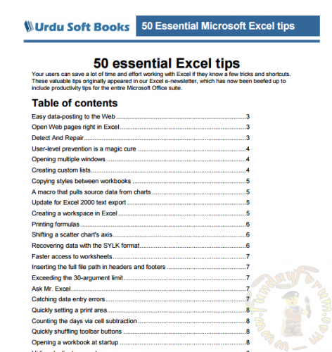 50 Essential Microsoft Excel Tips Book Free Download,Download free Computer Science Books in pdf format , Read Computer Science books online,Computer Hardware Pdf book In Urdu Free Download ,