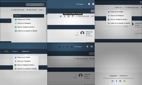 Social Icons for IPS4 is the most advanced plugin available for integrating your favorite social media networks into several locations throughout the suite. This plugin takes full advantage of font icons by allowing full control over size, colour and positioning using simple cross-browser & cross-device CSS code. This eliminates the need for additional raster based icons thus massively improving site performance.