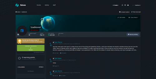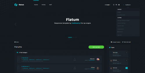A dark template for the latest version of IPS 4.3.x, which has a very advanced configuration in the ACP (including a top in the style of fixed, changing the display of the subforum, layout of the header and other visible in the gallery), which allows you to adapt it to every requirement. This theme is fully responsive.