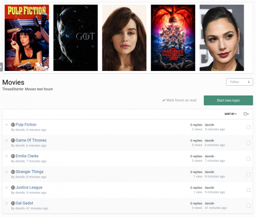 - Movie boards can show movie content with the posters above the topic list.
