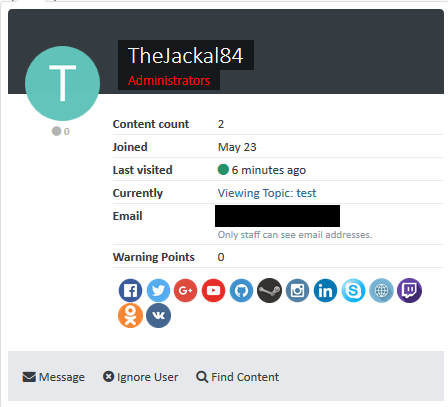 - Hide the member social icons from the topics, hover card or the profile blocks