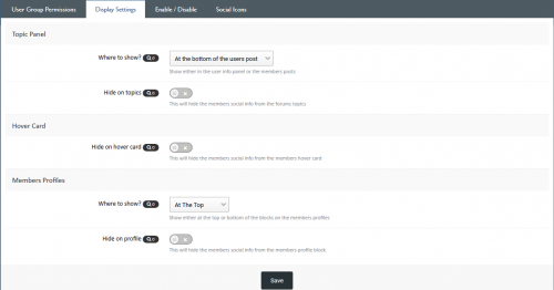 - Choose to display the member social icons on either the members user info panel or the members posts