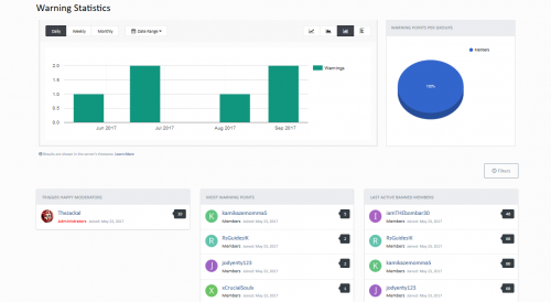 - Shows a block list of the 'TRIGGER HAPPY MODERATORS' moderators who have gave the most warning points