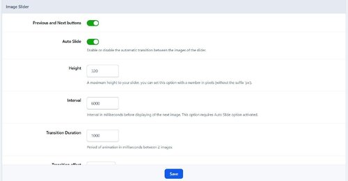 Various customization options for slider style such as navigation buttons, auto slide, max height, interval, transition effect, display forum's title & description in cover.
