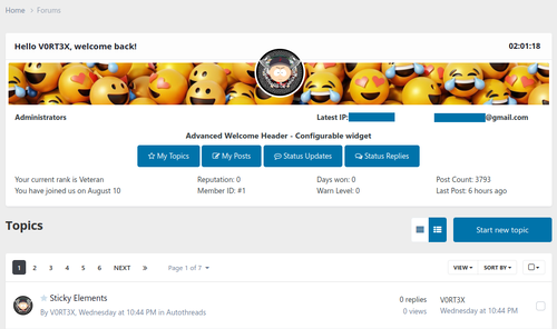 Advanced Welcome Header is an Invision Community (IPS) plugin designed to enhance the top βwelcome areaβ of your forum. It replaces or extends the default guest/member greeting with a more customizable, visually rich header block.