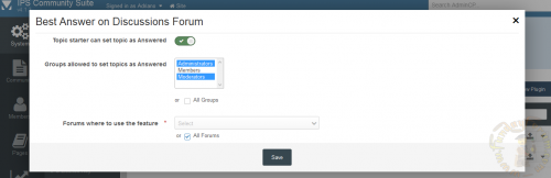 This plugin will restore theย BEST ANSWERย feature from IP.Board 3.4. It will allow topic starters and users from selected groups to mark a post as best answer. A tag ANSWERED will appear on forum view to show which topics are resolved.