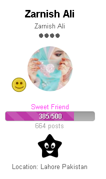 Zarnish Ali Posted September 6, 2016 Report Posted September 6, 2016 21 hours ago, waqas dar said: your fav sport?ย Your fav place? your fav timepass thing? your fav crickter? your fav actor and actress? your fav movie? your fav mobile game? your best friend name in real life? your best friend name on facebook? what is the best part in this forum what u like most in this forum ? cricket ย 2 papa ka ghar 3; fb digest 4: Shahid 5: Salman shardha 6: Hum sath sath hain 7: Candy crush 8: Ayesha 9: Eylaaf 10: Apni timeline. Ur monthly winers 3