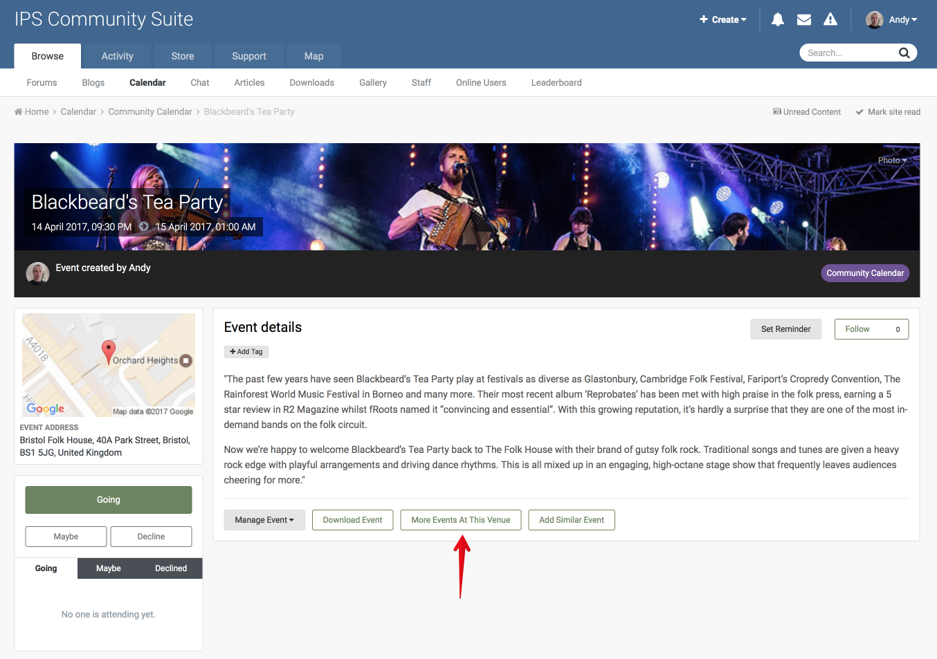 ADMINπ Posted March 27, 2017 Posted March 27, 2017 This entry is about ourΒ IPS Community Suite 4.2Β release. Following on from our previous news entryΒ "Add Similar Event" we are pleased to announce another feature that will make adding and discovering new events as easy as possible. Support for geographic event locations has been in Calendar for some time now but with 4.2 we have taken this a step further with venue support. When enabled, members can set the event location from a list of pre-defined venues. Address details and maps will then be automatically shown in the event view. Event view shows the venue map and address as well as a link to other events at the venue Additionally, a link will be added so that other events occurring at this venue can be discovered. Venue view shows all events at the location Venues can be added via the admin control panel or inline when adding events (for users with permission) ACP venue management Inline adding of venues when adding events If a venue has not already been added then a fallback to the standard address form input is provided. We have a few more Calendar improvements still to reveal so be sure to follow News & Updates for further announcements. View the full article